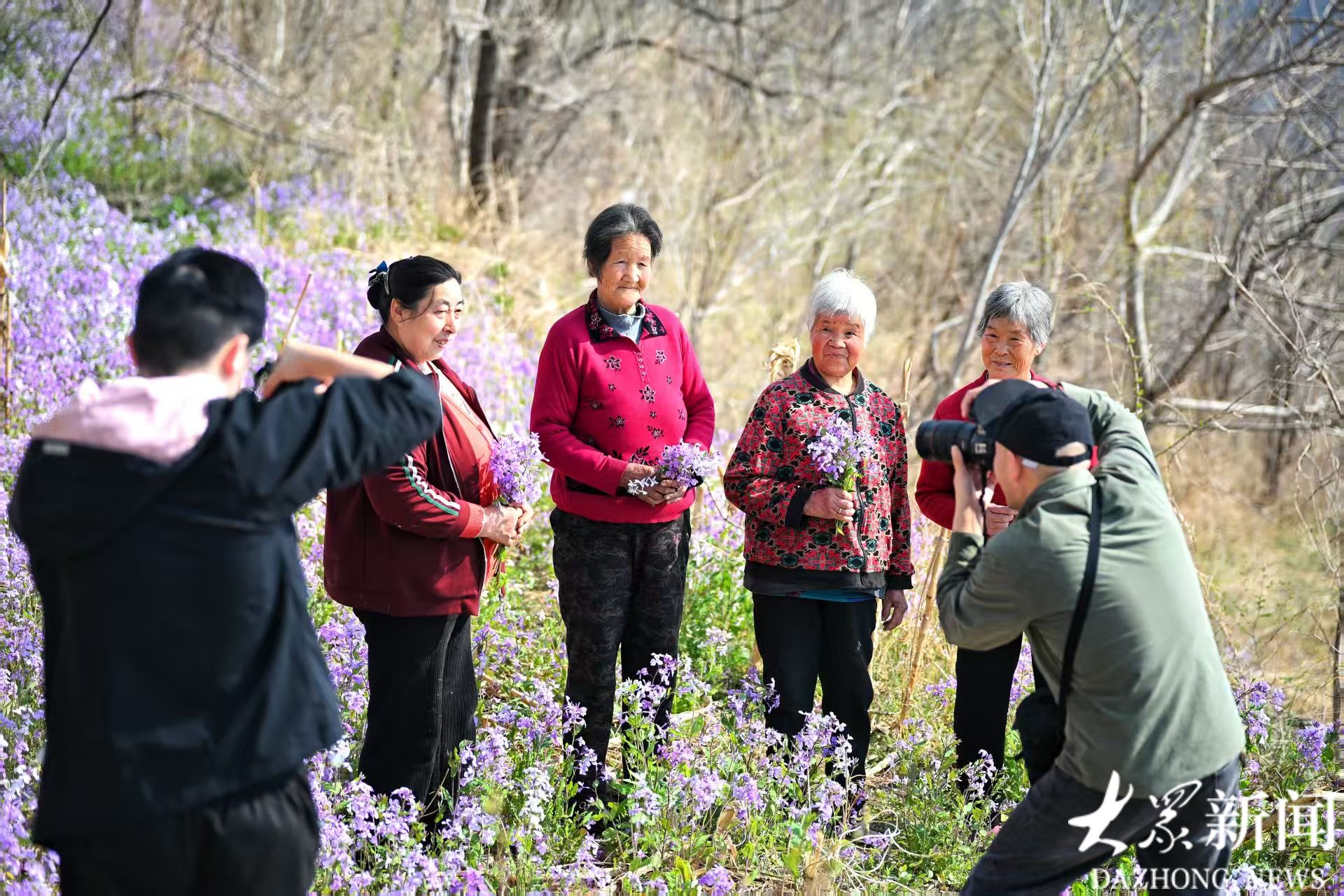 4月的沂蒙山脉,876米高的淹子岭村被一片紫色花海簇拥。在“大众拍大众”公益影像活动的现场,临朐县摄影家协会衣明钦、高玉超、曾庆森三位摄影师,带着光影与温情奔赴这场春日之约。他们穿梭在二月兰花丛与村民之间,用镜头捕捉老人们最舒展的模样,把云端之上的温暖与美好定格成永恒。