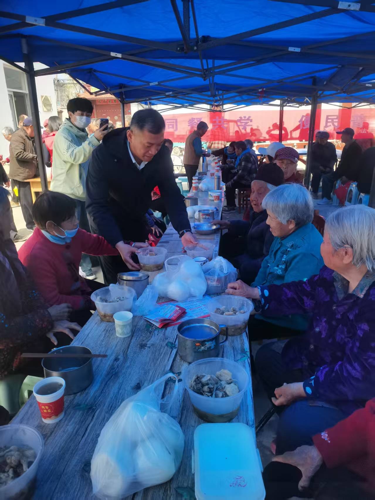 4月10日,济南市济阳区新市镇新市村老年食堂内暖意融融、普法氛围浓厚。该村村居法律顾问艾强走进老年食堂,与全村86名70岁以上老人共进午餐、共话法治,以“同餐共学、便民普法”的创新形式,把法律知识送到老人餐桌旁,把法律服务送到群众心坎上,切实守护老年群体合法权益。
