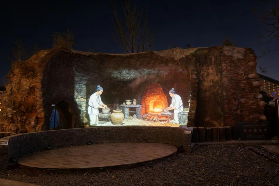 还运用光影投影、装置艺术等多元形式打造沉浸式视觉交互,生动再现古窑文化的烟火场景,古老遗址与现代景观交相辉映,随手一拍都是跨越时空的氛围感大片。