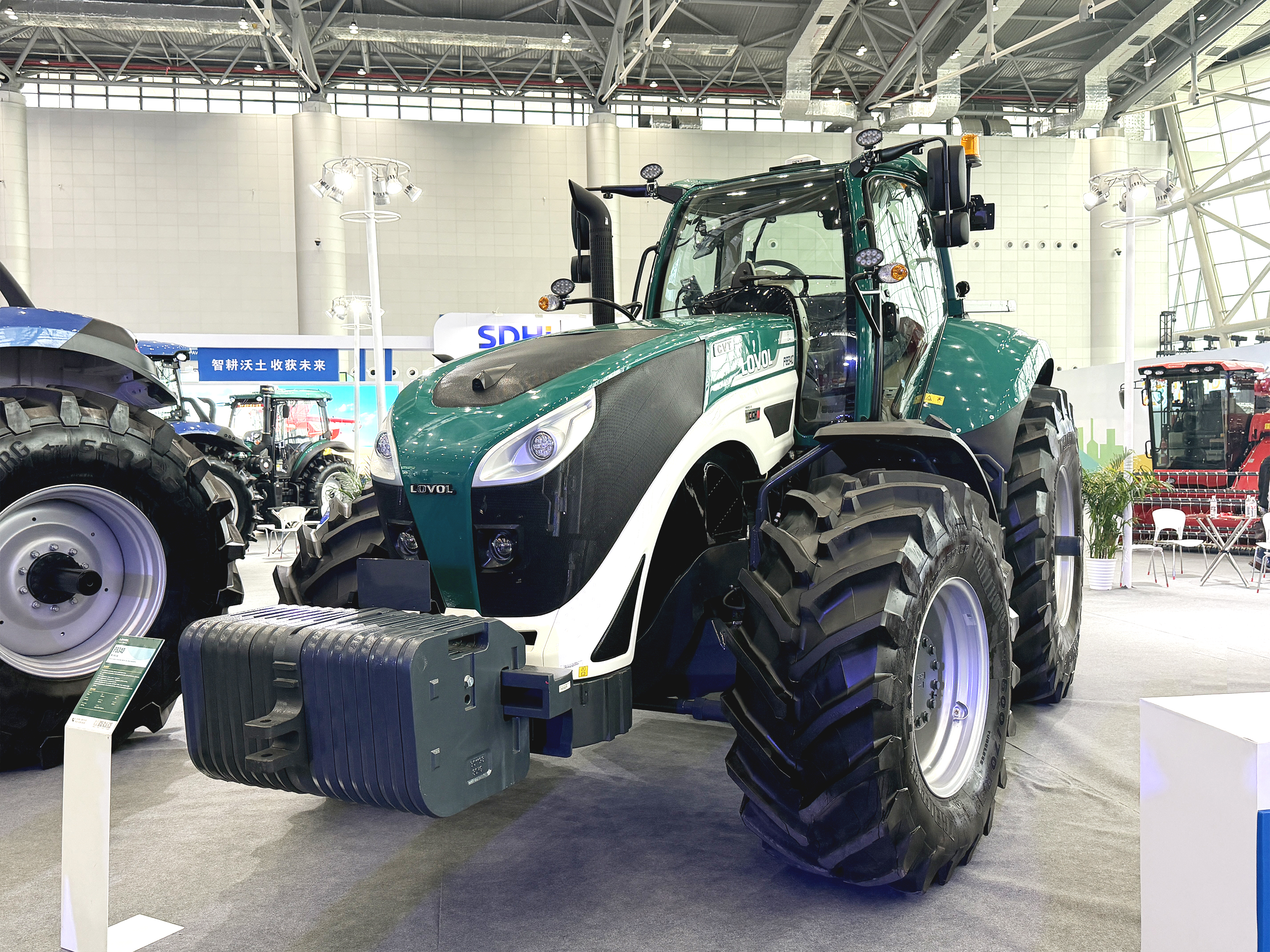 在拖拉机展区,潍柴雷沃智慧农业展示了CVT、新能源和动力换挡等代表行业前沿技术的三大平台系列产品。