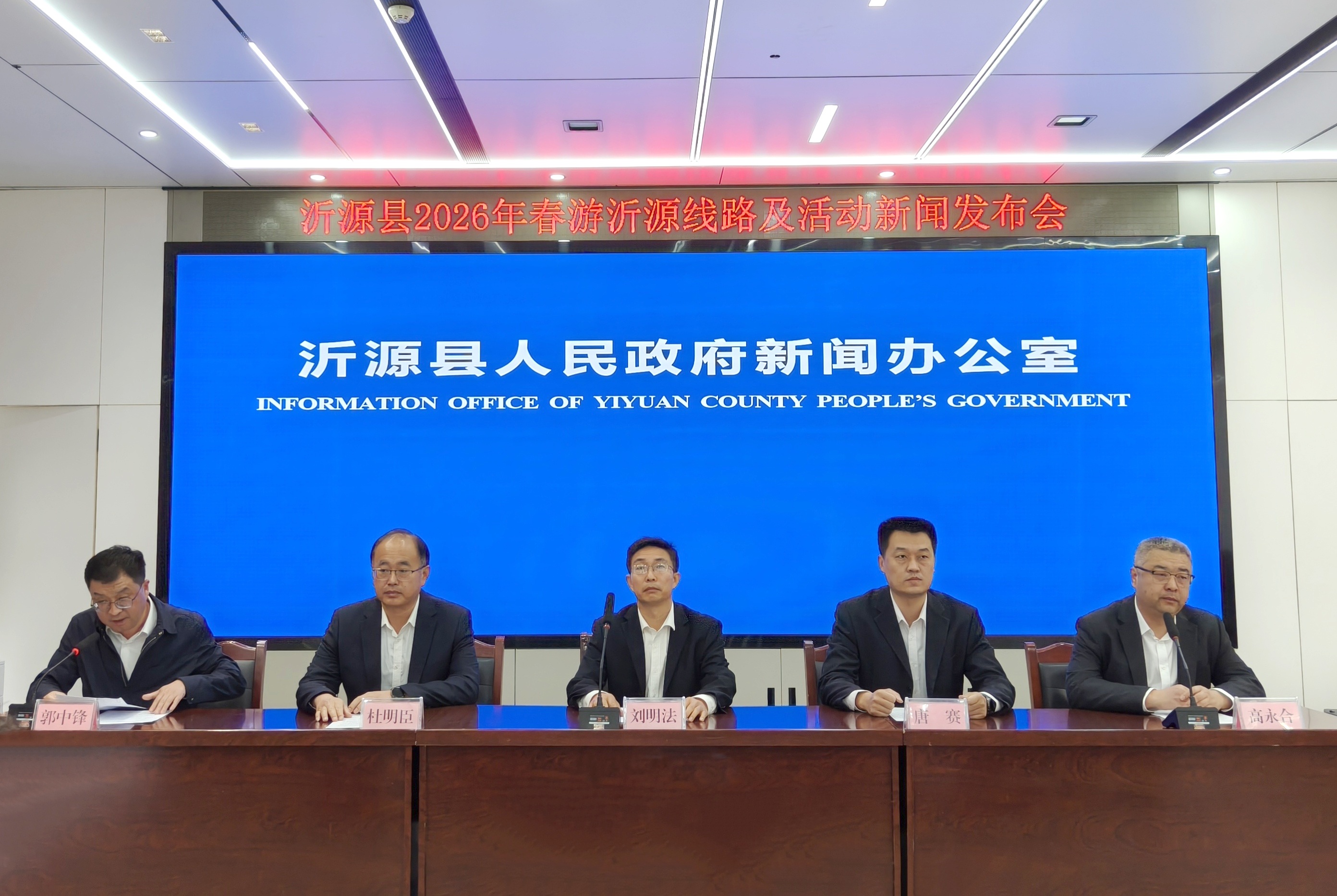 4月10日,在第二届沂河源敬水节暨第三十二届汇泉桃花节即将启幕之际,沂源县举行2026年春游沂源新闻发布会,县委宣传部分管日常工作的副部长郭中锋主持,县委宣传部副部长,县文化和旅游局党组书记、局长刘明法介绍了春季旅游线路、重点活动安排以及近年来全县文旅融合发展的新成效、新亮点,县文化和旅游局、山东桃花岛艺术乡村文化旅游发展有限公司相关负责同志就有关问题回答了记者提问。