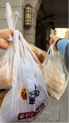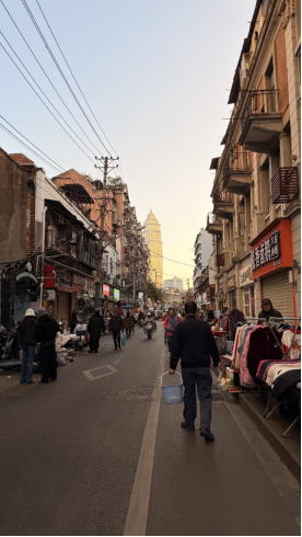 为了争取更多活动时间,两人早上5点半就起床,6点已在吉庆街吃热干面,接着去黎黄陂路散步,打卡巴公房子,8点到达天声路市场,一路上尝了米粑、面窝、炸藕丸子、青稞馒头等小吃。