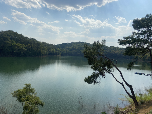 从公园正门进入,爬一段阶梯就能看到梅子湖