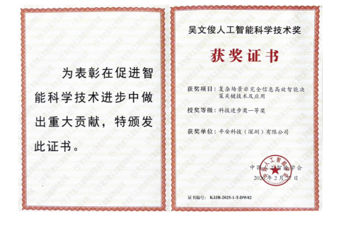 据介绍,“吴文俊人工智能科学技术奖”被誉为“中国智能科学技术最高奖”,是经国家科学技术部批准设立,由国家级学会—中国人工智能学会(CAAI)发起主办,旨在表彰在智能科学技术领域取得重大突破、作出卓越贡献的科技工作者和项目。在此之前,2020年平安科技也曾凭借《基于时序知识图谱的金融风控与经济量化决策平台产业化》项目获颁吴文俊人工智能科技进步奖一等奖。