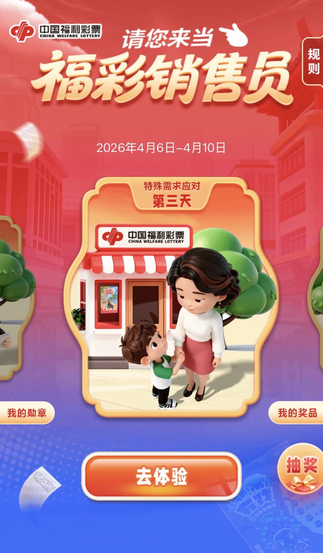 “请您来当福彩销售员”H5上线啦,邀您沉浸式体验福彩站日常,边玩边学彩票知识,更有玩偶盲盒惊喜相送,欢迎来玩儿。