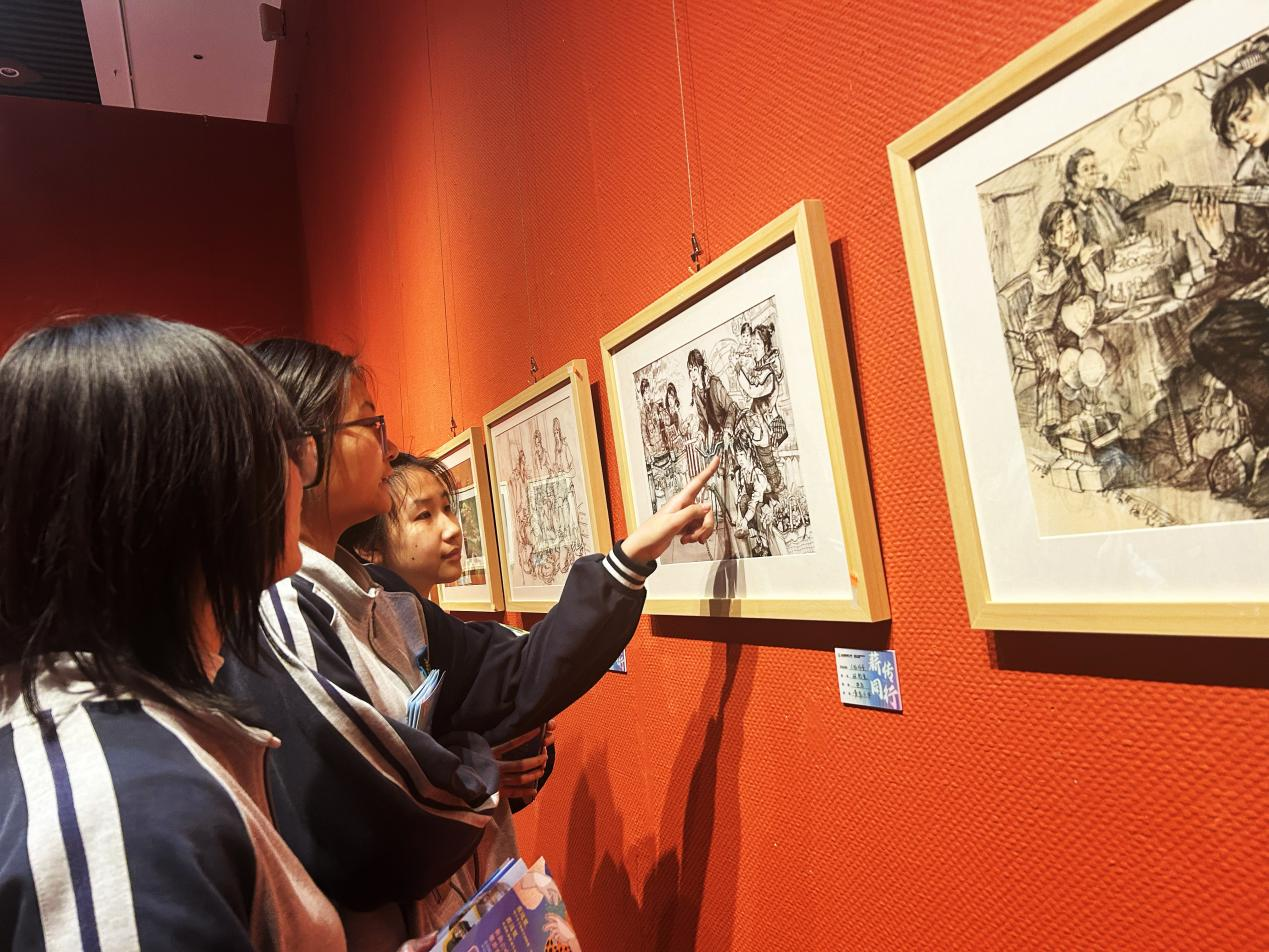 大家穿梭于一幅幅精心创作的作品之间,时而驻足凝视,时而低声交流,共同见证美术教育成果。前来观展的青岛六中2024级2班学生张晋宁难掩兴奋之情,看着学长学姐以及高校学生的优秀作品,坚定了要像他们一样优秀的决心。作为青岛六中杰出校友,青岛大学艺术学院副院长、教授黄钺坦言,这些作品体现学生扎实的基础,从素描到色彩再到创意设计,展现出全面发展的艺术素养,希望以本次活动为契机,进一步加强高校与高中的交流,通过“美育浸润行动”,助力地方学校艺术学科发展。