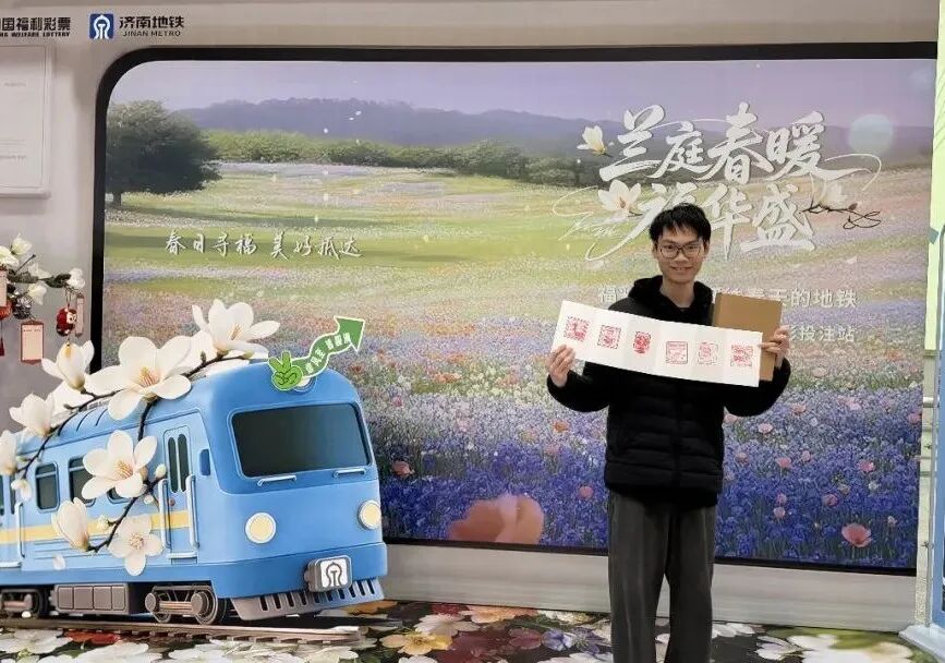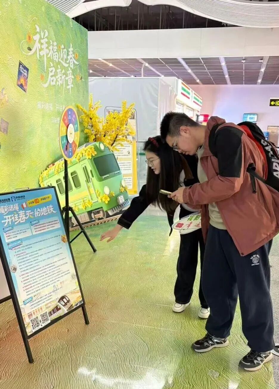 4月8日下午,济南地铁五里牌坊、转山西路、汉峪金谷、安成街、奥体中心站5座“春日寻福驿站”同步亮起灯光,“福彩送福 开往春天的地铁”正式发车!