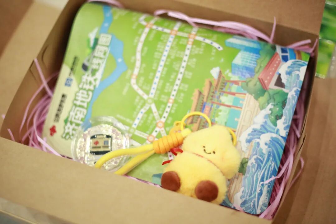 集齐5站7枚印章后,凭手账前往奥体中心站打卡点,即可领取主题文创礼盒。