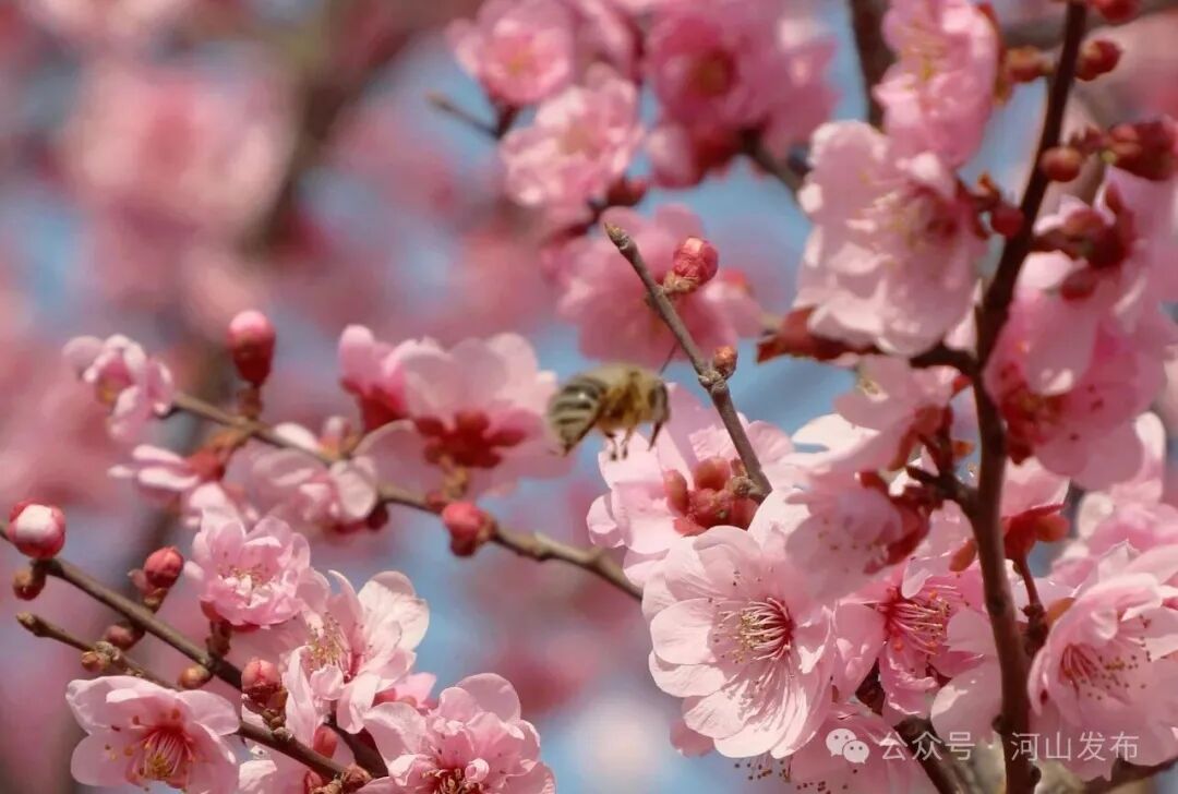 朵朵粉蕊轻舒柔瓣,如同云霞轻落枝头,随风翩跹时,晕染出清甜又浪漫的温柔。