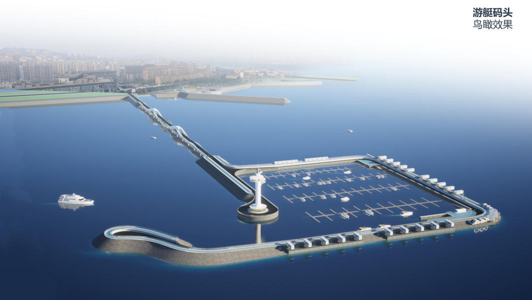 项目采用PPP合作模式,由中交(日照)城市发展公司投资建设,整体由栈桥、港池、灯塔三部分构成,占用海域面积约10公顷。文化栈桥全长428米,融入海岸、波浪、青鸾等岚山特色文化元素,线条流畅而富有韵味;204个游艇泊位分布排列,满足休闲垂钓与海上观光多元需求;46米高多功能灯塔与40间胶囊式民宿相映成趣,为游客提供吃、住、玩一站式体验。