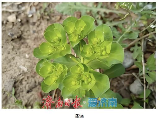 泽漆茎丛生,基部常呈紫红色,上部淡绿色,叶片为倒卵形或匙形,边缘中部以上有细锯齿。泽漆全株有毒,不可随意食用鲜品,误食会导致呕吐、黏膜灼烧感等中毒症状。