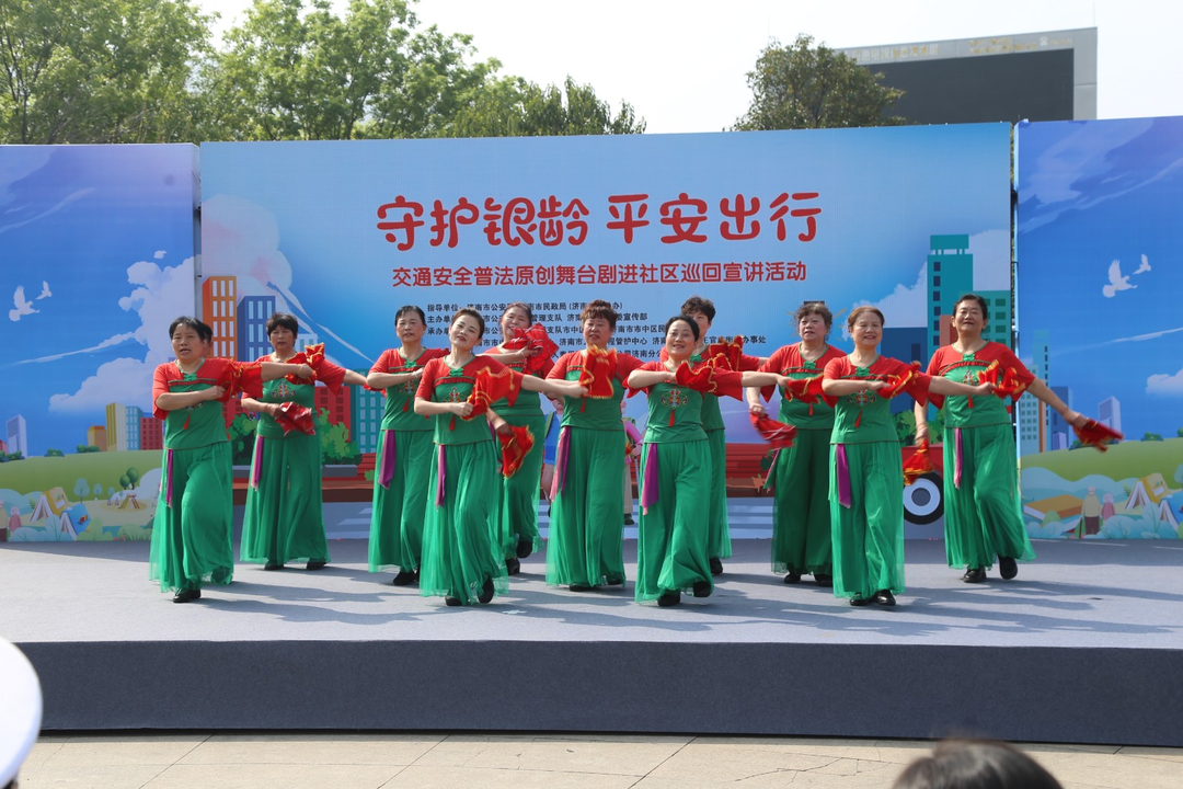 4月10日上午,“‘守护银龄 平安出行’交通安全普法原创舞台剧进社区巡回宣讲活动”启动仪式在济南市市中区大众广场举行。此次活动由济南市公安局、济南市民政局、济南市老龄办、济南市市中区委宣传部共同举办,旨在通过开展精准化、沉浸式交通安全宣传,提升老年群体交通安全意识、法治意识与文明出行素养,有效预防和减少涉老交通事故,营造关爱老年人安全出行的良好氛围。