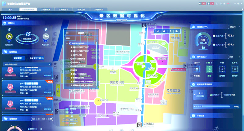 平台作为景区“神经中枢”,集成系统监控、报警处置、门禁管理、可视对话等核心功能,实现设施统一管控,搭建管理者与游客的沟通桥梁,让景区管理更省心、游客游览更舒心。