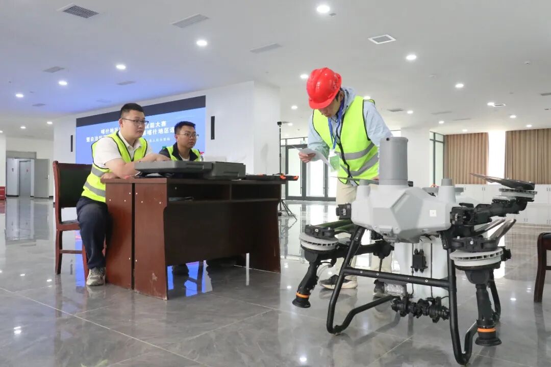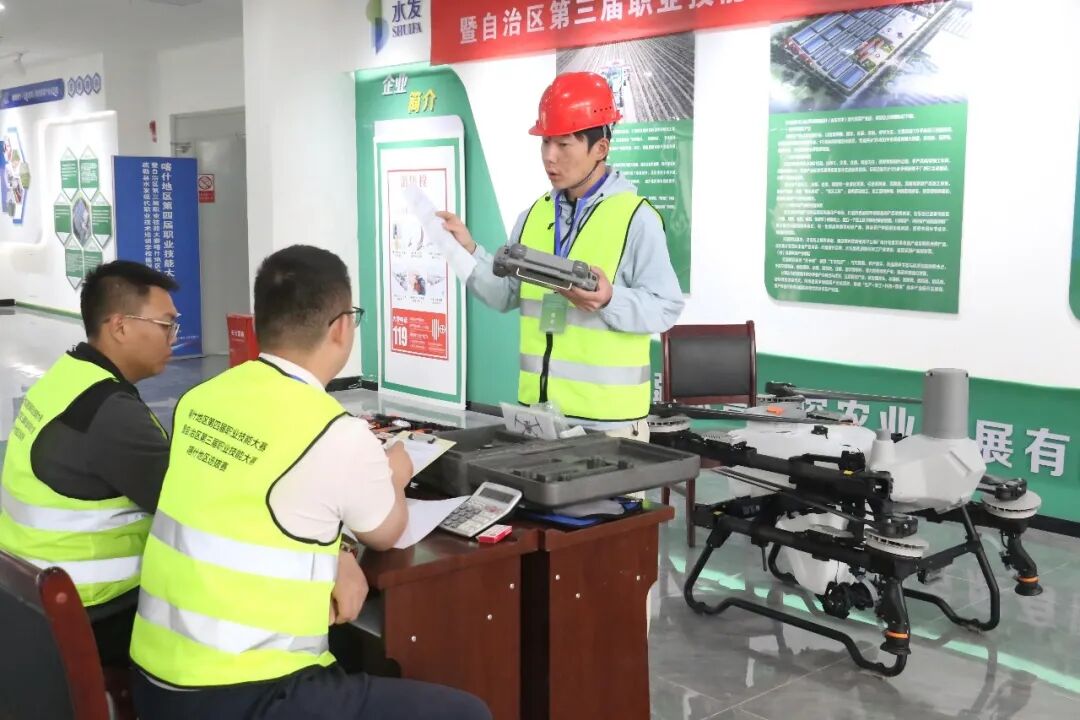 本次无人机驾驶(植保)工种比赛中应急处置模块的考核与检验。喀什地区融媒体中心 记者李霖 摄