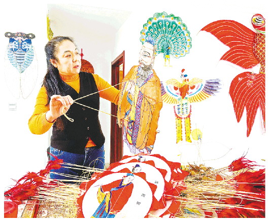作为“风筝王”杨同科第三代传人,杨红卫深耕风筝技艺四十余年。往年她常以龙头蜈蚣风筝亮相风筝会,今年在传统潍坊风筝的基础上加以创新,融入儒家文化,用长串结构将圣贤群像徐徐展现在蓝天之上,让风筝成为承载文化叙事的空中画卷。“目前这只风筝已经全部完成,前几天进行了试飞,效果还有些不理想,这几天重点调试平衡与风力适配,确保以最佳状态在风筝会上放飞。”杨红卫一边介绍,指尖一边在竹篾上灵活翻飞,每一处微调都凝聚着她对技艺的坚守。