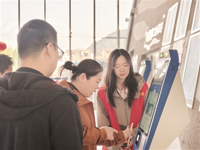 四载寒暑,初心如磐。“青锋”队伍不断壮大,服务的深度与广度也持续拓展。在桃花峪游客服务中心,志愿者扎根游客最为密集的区域,围绕购票取票、线路咨询、交通接驳、文明引导等实际需求,提供全方位、贴心式的帮助。他们耐心解答每一位游客的疑问,细心为游客介绍每一条游览路线;他们主动搀扶行动不便的老年人,悉心照看与家人走散的孩子,协助游客搬运沉重的行李。在客流高峰时段,他们还配合景区工作人员疏导客流、维护秩序,积极倡导文明旅游、绿色出行,助力营造和谐、整洁、安全的游览环境。