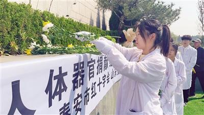 本报4月9日讯(记者 徐文莉)近日,在泰山长安园遗体(器官)捐献者纪念园,“生命·曙光”2026年泰安市人体器官捐献缅怀纪念活动举行。市红十字会工作人员,山东第一医科大学、山东力明职业技术学院学生代表,以及人体器官捐献者家属代表一起缅怀逝者,表达追思。