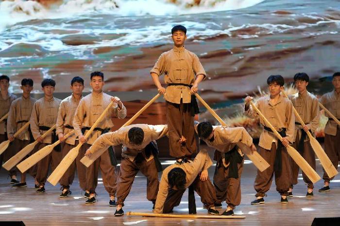一部剧,让思政课“活”起来。该校师生团队精心创排的大型原创舞台剧《黄河号子》,以国家级非遗《黄河号子》为艺术载体,全景式再现黄河儿女团结协作、自强不息的壮阔图景。该剧将黄河文化与思政教育深度融合,先后赴多地展演并获广泛赞誉,已成为学校独具特色的文化名片。不少学生表示,参与排演和观看剧目,比单纯听课更让人感受到团结拼搏的精神力量。