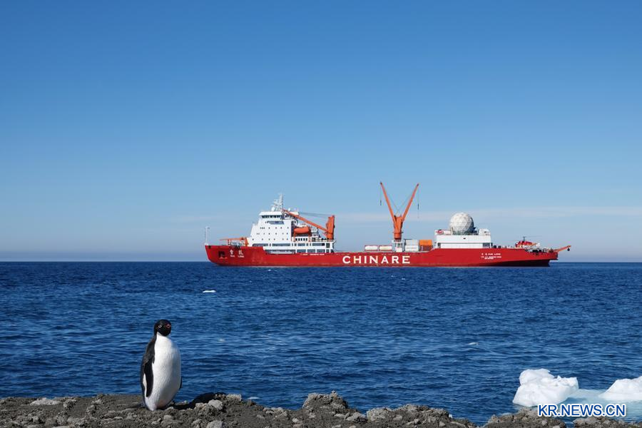 제42차 남극 탐사 임무를 수행 중인 중국 극지 과학탐사 쇄빙선 '쉐룽(雪龍)호'가 지난해 12월 29일 친링 기지 해역에 도착해 하역 작업을 시작했다. (사진/신화통신)