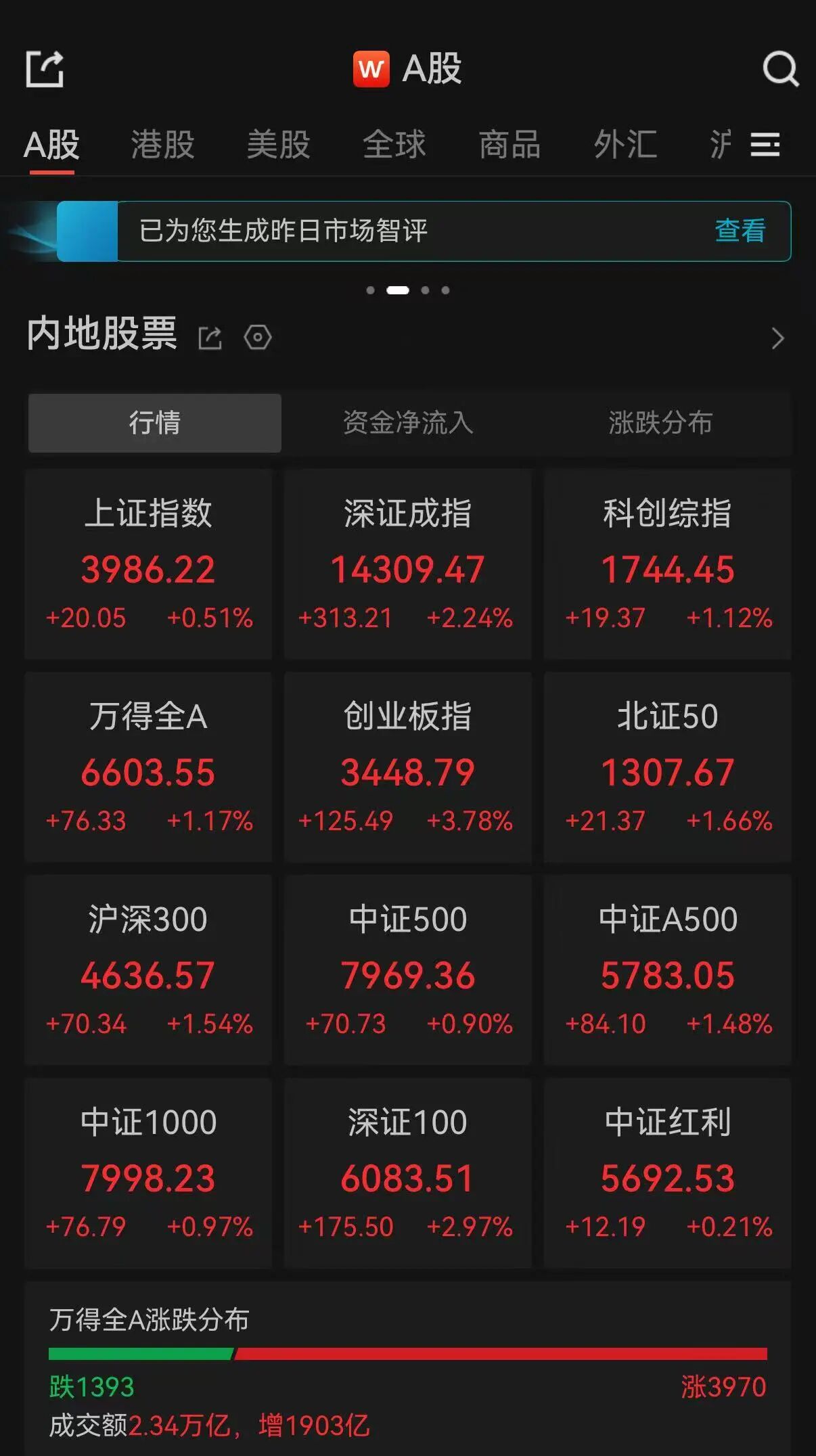 A股收评:近4000只个股飘红,三大指数集体收涨,沪指4000点得而复失,电池板块大涨