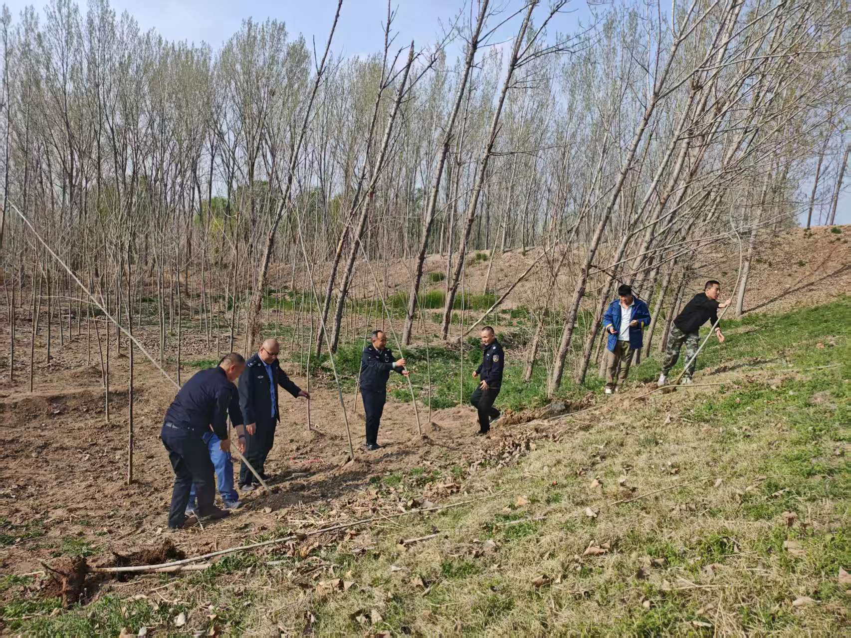 为全面加强河道堤防及滩地管理,有效遏制河道管理范围内违章种植行为,切实保护黄河生态环境与水利工程安全,4月2日,东营黄河河务局水政监察大队清除一处违章种植树木,位置在老于村黄河大堤临河堤坡,现场清除违规种植树木,并对当事人进行说服教育,违规种植属于违法行为,黄河工程需要大家共同爱护,才能保障沿岸群众生命安全。