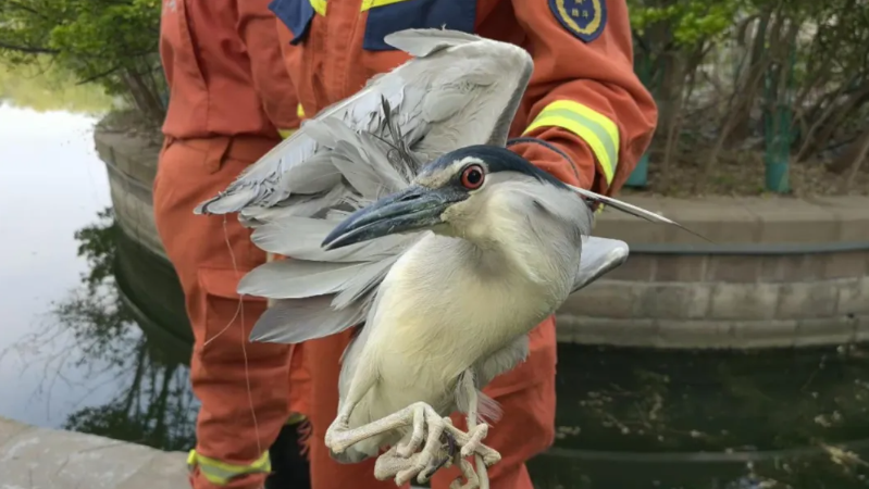 消防员又 “出警” 了!这次救的是只网红夜鹭