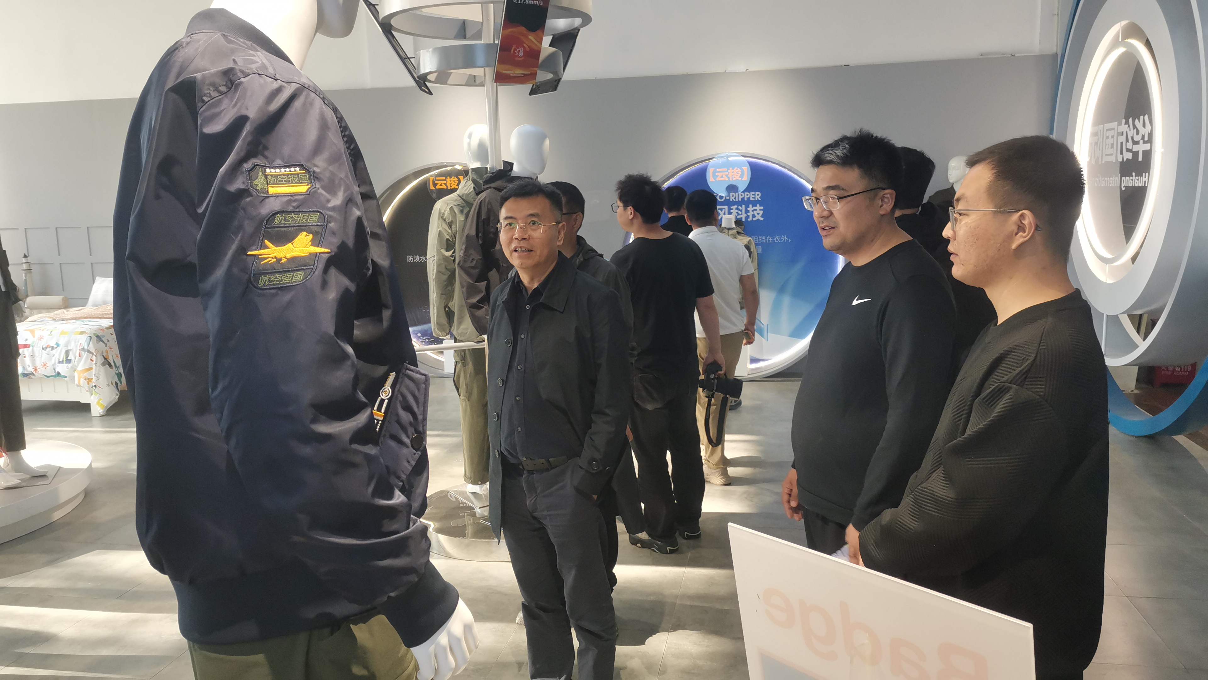 作为滨州纺织行业的标杆企业,华纺股份始建于1976年,2001年在上交所上市,历经近五十年深耕,已成长为中国纺织印染行业龙头骨干企业。展厅内,企业发展历程、全产业链布局展板清晰呈现,670亩厂区规模、39亿元资产总额、23家分分子公司的产业版图,涵盖纺织印染、服装家纺、医用防护、热电等多元领域,让嘉宾们对企业底蕴有了直观认知。琳琅满目的展品格外吸睛:色泽鲜亮的高端印染面料、精致舒适的床品家纺、款式精良的成衣制品,还有口罩、防护服等医用防护产品,全方位展现出企业强劲的产能实力——年印染布4亿米、床品2000万件、服装350万件,80%产品远销全球50多个国家和地区,年出口创汇达4亿美元。