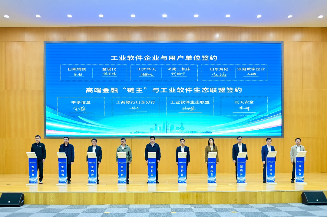 会议期间,山东省工业软件生态联盟联合山东省软件行业协会、浪潮数字企业等共同签订“人工智能+工业软件”创新发展倡议书。山东省工业软件生态联盟理事长、浪潮数字企业董事长魏代森表示,联盟集聚了浪潮数字企业、华天软件、济南机床二厂、山东大学软件学院等省内重点企业和高校,目前有相关会员单位300多家,在制约产业发展的重要领域形成创新集群,破解关键软件难题,聚焦行业应用场景,共建工业软件生态,助力工业企业数字化转型和产业升级。