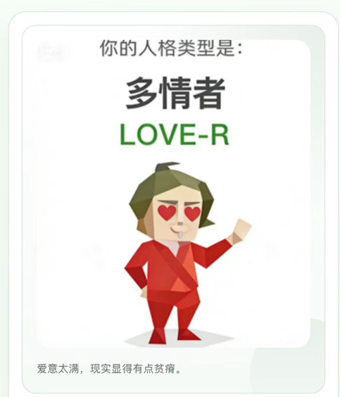 作者的创作初衷十分接地气:专为劝一位爱喝酒的朋友戒酒,特意设置“酒鬼”人格,让朋友必测到并看到饮酒危害提醒。测试更像是一个游戏,以戏谑自嘲、解构严肃为核心,纯娱乐属性,页面明确标注“仅供娱乐、禁止商用”。测试共31题,几分钟即可出结果,生成各种有趣的“人格标签”,精准戳中年轻人情绪痛点,引发集体共鸣。