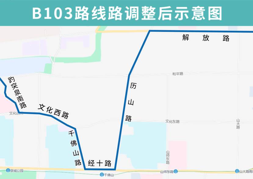 4月10日,记者从济南公交获悉,为持续做好线网优化工作,加强公交与地铁的接驳换乘,自4月15日起,济南公交B103路优化调整部分运行路段。B103路由砚泉开往大观园,优化调整后沿历山路向南、经十路向西、千佛山路向北至文化西路向西恢复原线,沿途增设历山路文化东路(路西)、历山名郡、千佛山、千佛山路、千佛山路文化西路(路西)站点,撤销文化西路东口(路北)、文化西路千佛山路(路南)站点。B103路砚泉发车时间为5:30-21:00,大观园发车时间为6:05-21:40。