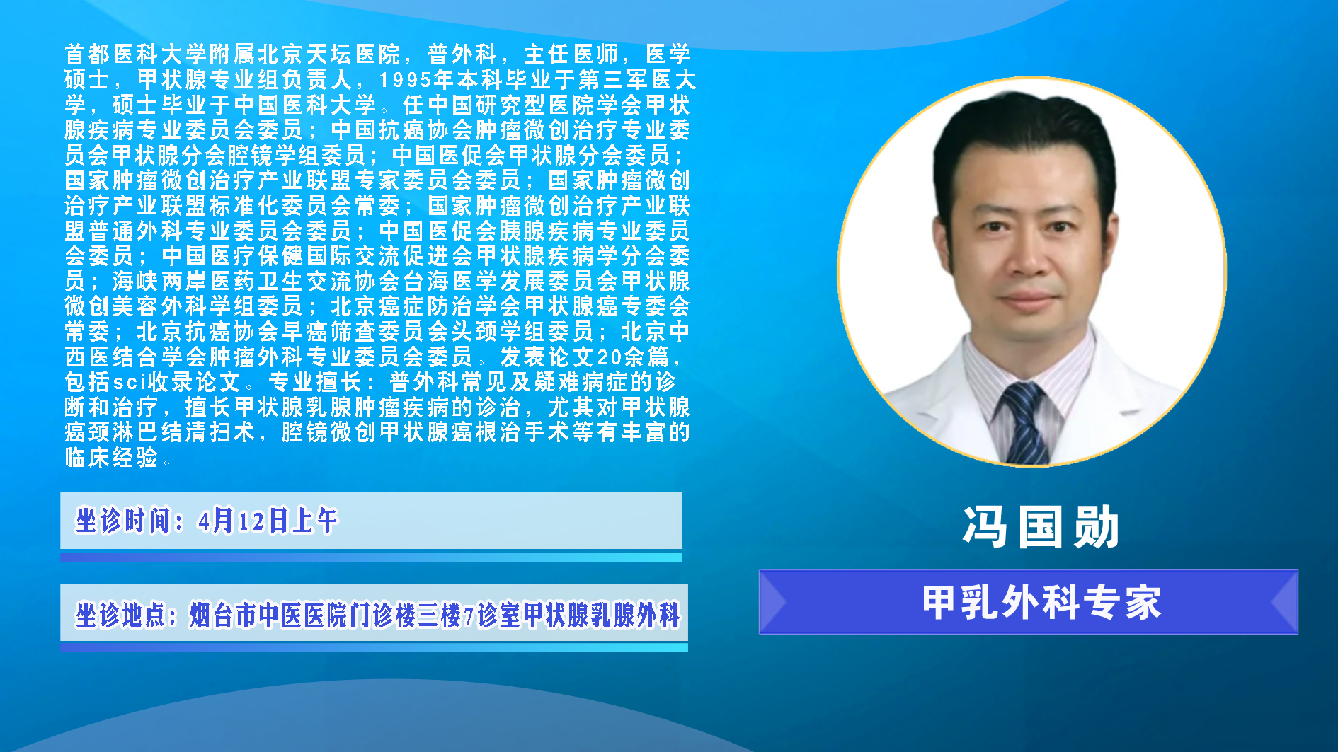 为满足港城百姓的就医需求,让烟台市民在家门口就能享受到北京名院专家精湛、优质的医疗技术服务,有效解决群众看病就医的难题,4月11-12日,烟台市中医医院特邀请北京名院专家来院开展诊疗服务和技术支持。本次前来坐诊的专家来自首都医科大学附属北京友谊医院、首都医科大学附属北京朝阳医院、首都医科大学附属北京安贞医院、北京大学肿瘤医院、首都医科大学附属北京天坛医院。如有需要,请提前预约。