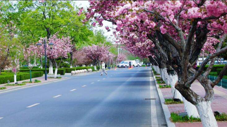 漫步在区政务中心周边的广场东路与广场西路上,淡淡的清甜香气萦绕鼻尖、沁人心脾。抬头望去,一簇簇粉嫩的樱花缀满枝头,花瓣轻盈剔透、娇俏动人,微风拂过,花瓣随风轻舞、簌簌飘落,如雪似霞、如梦似幻。三步一景,五步一画,这般浪漫景致,仿佛让人置身于闹市中的“春日秘境”,忘却喧嚣、沉醉其中。