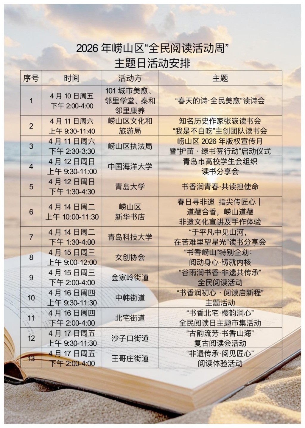 2026年崂山区全民阅读月启幕,山海阅读联盟以及三条特色阅读线路发布