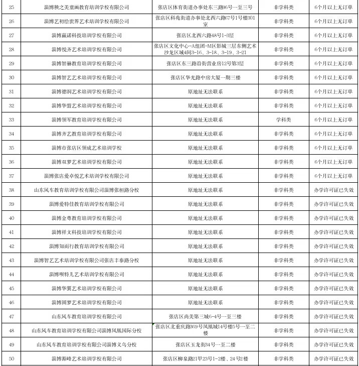 涉及67家机构!张店发布校外培训风险预警名单