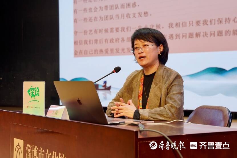 4月10日上午,淄博市文化馆星光剧场内,由淄博市文化馆与齐鲁晚报·齐鲁壹点联合主办的文化分享活动《大家说》第六期迎来收官之讲。本期活动特邀淄博市非遗项目泥塑(软陶制作)代表性传承人、淄博市工艺美术大师王枝,带来题为《守艺·新生:非遗文创的新时代生命力》的主题分享。近百名非遗爱好者、文创从业者、高校学生及市民到场聆听,现场交流氛围浓厚。