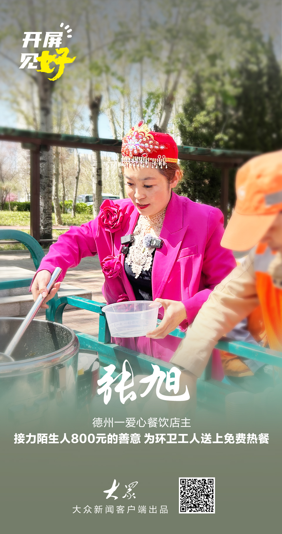 这个暖心之举,还要从去年7月说起。当时,张旭在店门口贴出“遇到困难可进店免费吃饭”的告示。一位从唐山来德州出差的男士看到后,专程走进店里,以“换现金”的名义给张旭转了800元钱,希望为有需要的人尽一份力。同年8月,张旭用这笔钱请24位环卫工人吃了第一顿爱心餐。