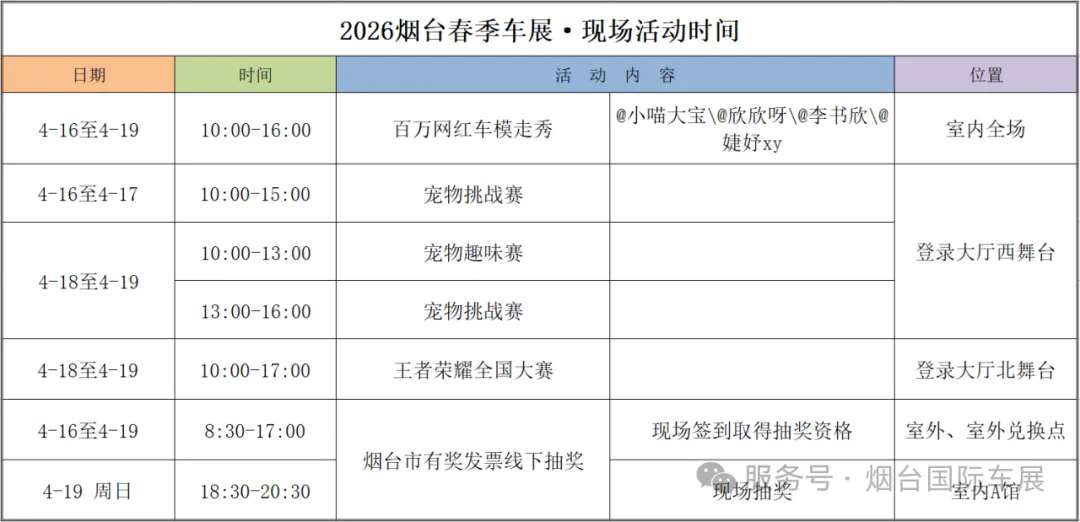 有奖发票线下抽奖(A馆):烟台市有奖发票首期线下抽奖活动将落地烟台车展现场,4月16日至19日凭100元(含)以上消费发票兑换资格后,4月19日晚到现场即有机会抽取汽车大奖。