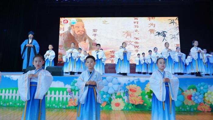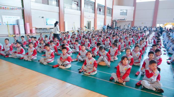 随后,同学们带来《学堂乐歌》新唱,在悠扬的歌声中传承经典、唱响童年;击鼓明志环节,孩子们依次击鼓,以铿锵鼓声明求学志向,声声震耳,宣告着逐梦前行的决心与勇气。