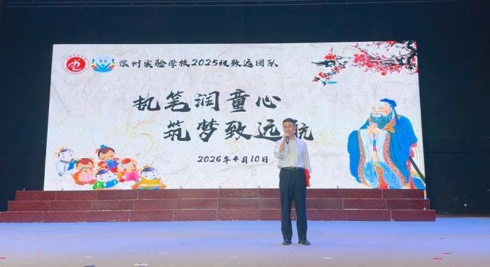 随后,滨州实验学校蒋涛校长代表学校,深情寄语孩子们:执笔礼是人生的重要起点,希望同学们以笔为犁,以梦为马,在书香校园中勤学善思、崇德向善,写好人生每一笔,走好成长每一步,成长为有理想、有本领、有担当的新时代好少年,在致远团队的陪伴下,奔赴属于自己的星辰大海。校长的殷切嘱托,为孩子们的求学之路注入了温暖力量与前行方向。