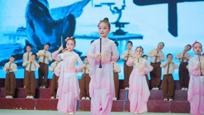 开场舞《诗耀中华》紧随登场,孩子们身着传统服饰,以灵动的舞姿、昂扬的精神,演绎中华诗词的韵律之美,瞬间点燃现场氛围,为整场活动奠定了浓厚的文化基调。