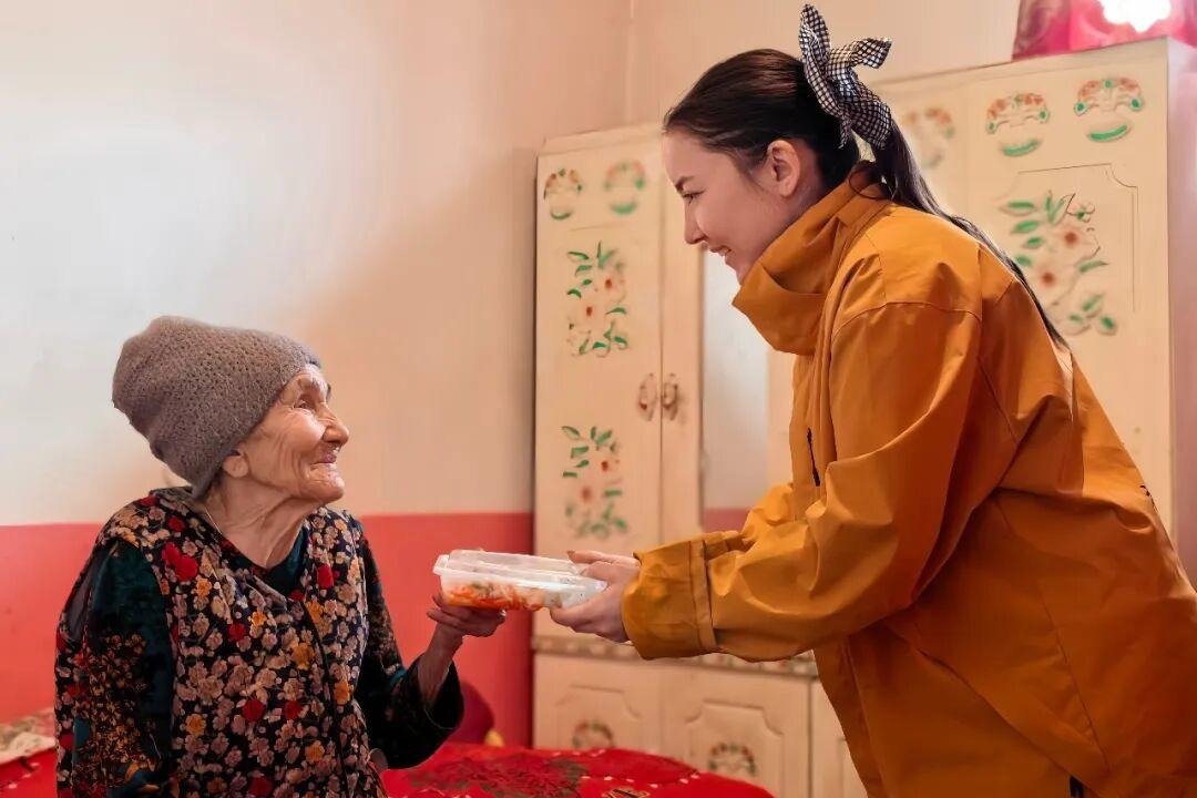 “这里的饭软和、盐也少,我牙口不好也能吃得香。”83岁的老人库婉汗·艾麦提腿脚不便,送餐人员每次上门,不仅送来热乎饭,还会陪她聊会儿天、询问身体状况,帮她解决生活难题。