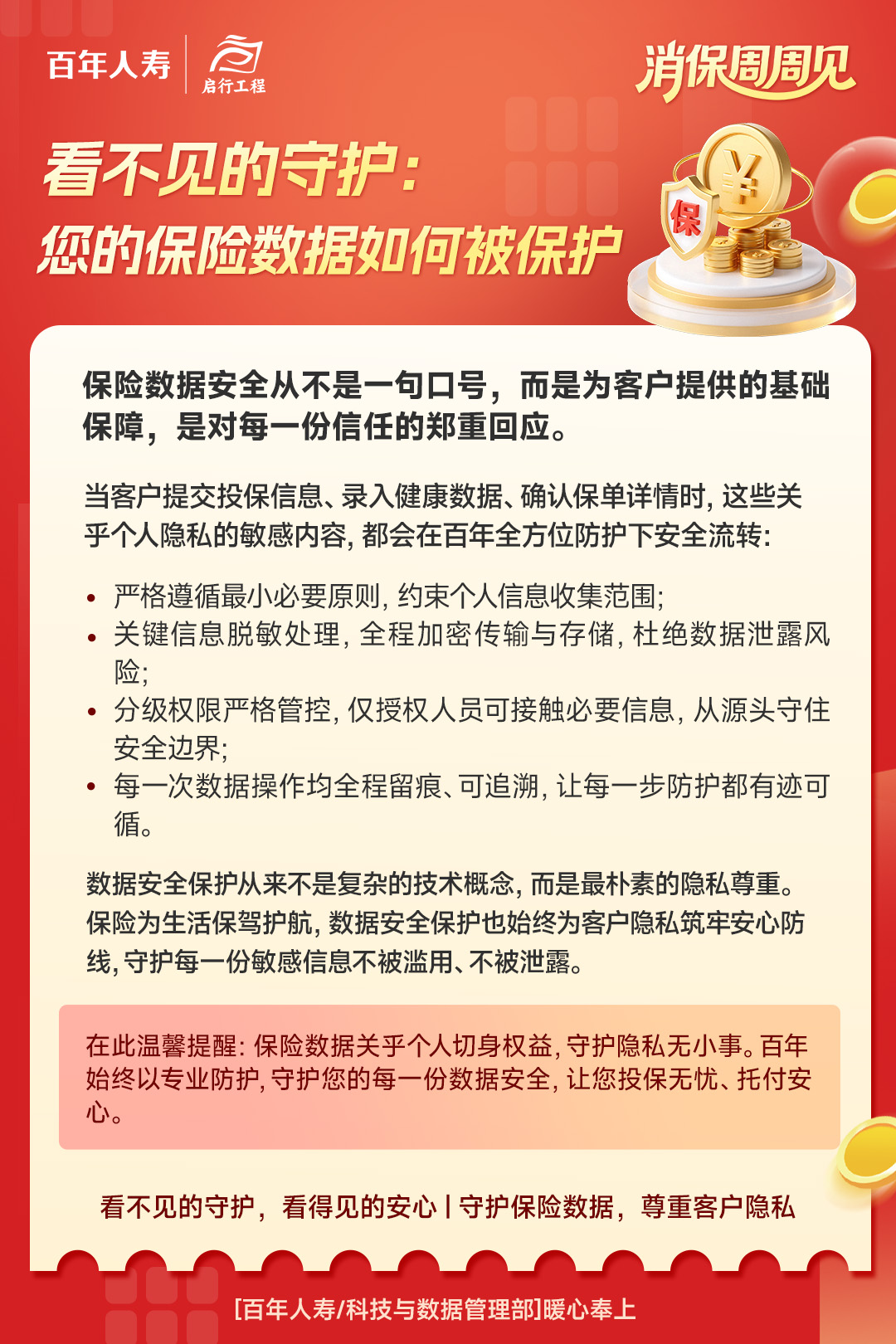 看不见的守护,看得见的安心!百年人寿筑牢数据安全防线,守护您的保险数据。