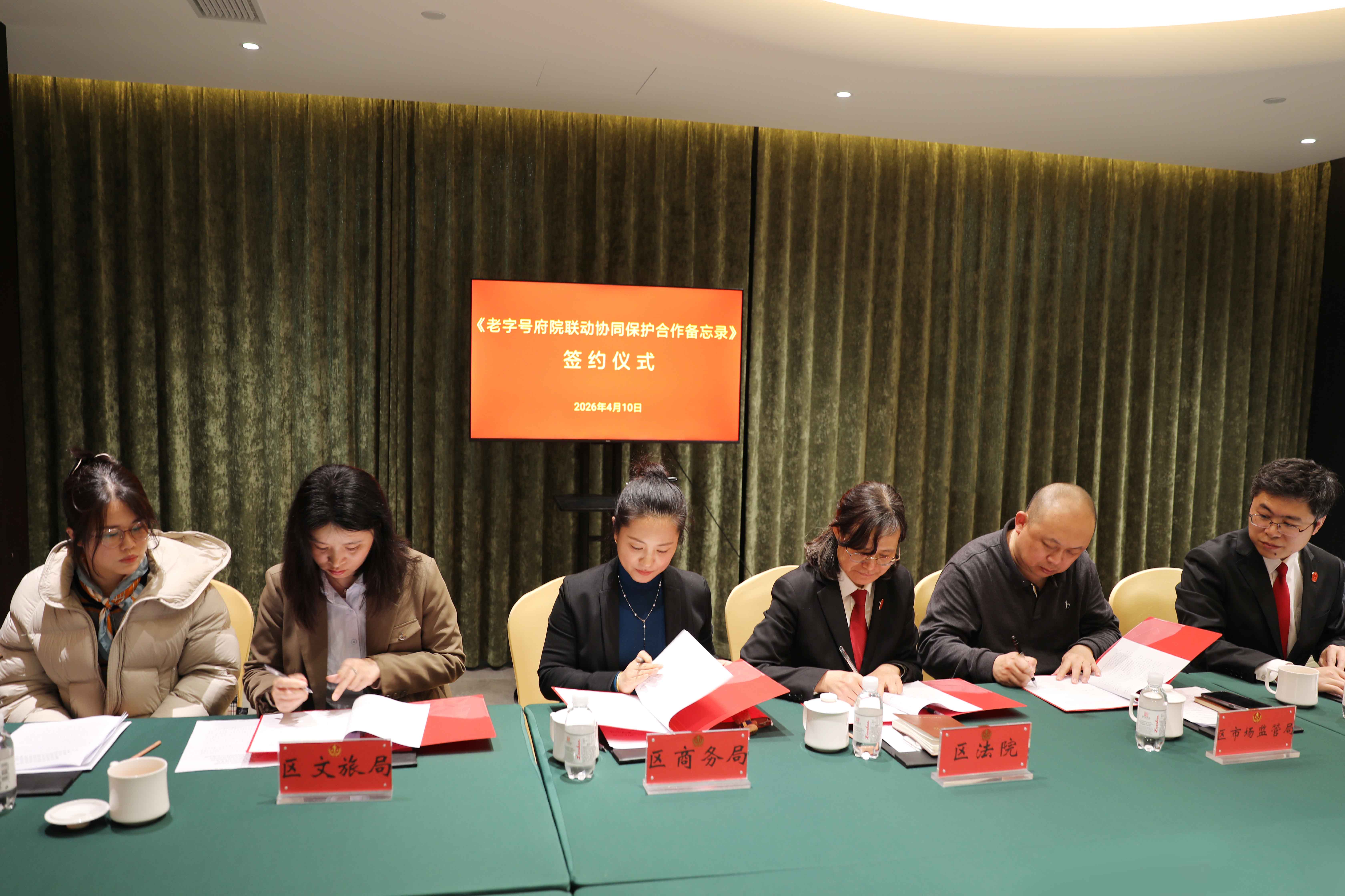 随后,市南区法院与市南区商务局、市南区文化和旅游局、市南区市场监督管理局共同签署《老字号府院联动协同保护合作备忘录》。