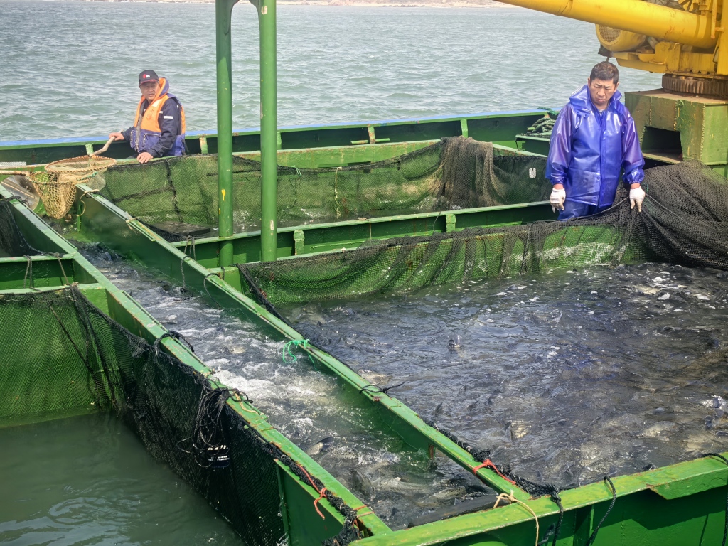作为青岛市规模最大的海洋牧场,鲁海丰国家级海洋牧场现有深水抗风浪网箱300余个,正依托丰富的网箱资源,持续释放“南鱼北养”发展潜力为市民餐桌提供更多优质、生态的海产品。