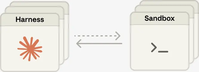 早期方案倾向于将会话、Harness和沙箱封装在单一容器内,这就导致了昂贵的「宠物效应」:服务器变得不可替代且极其娇贵。