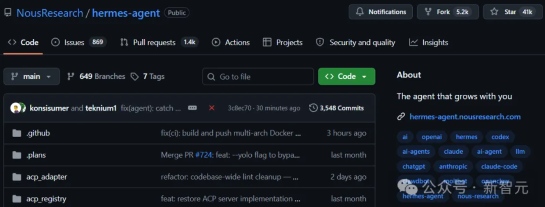 由Nous Research在2月底推出的这款开源智能体,在GitHub上已经狂揽4万星,更新速度超过大多数商业Agent产品。