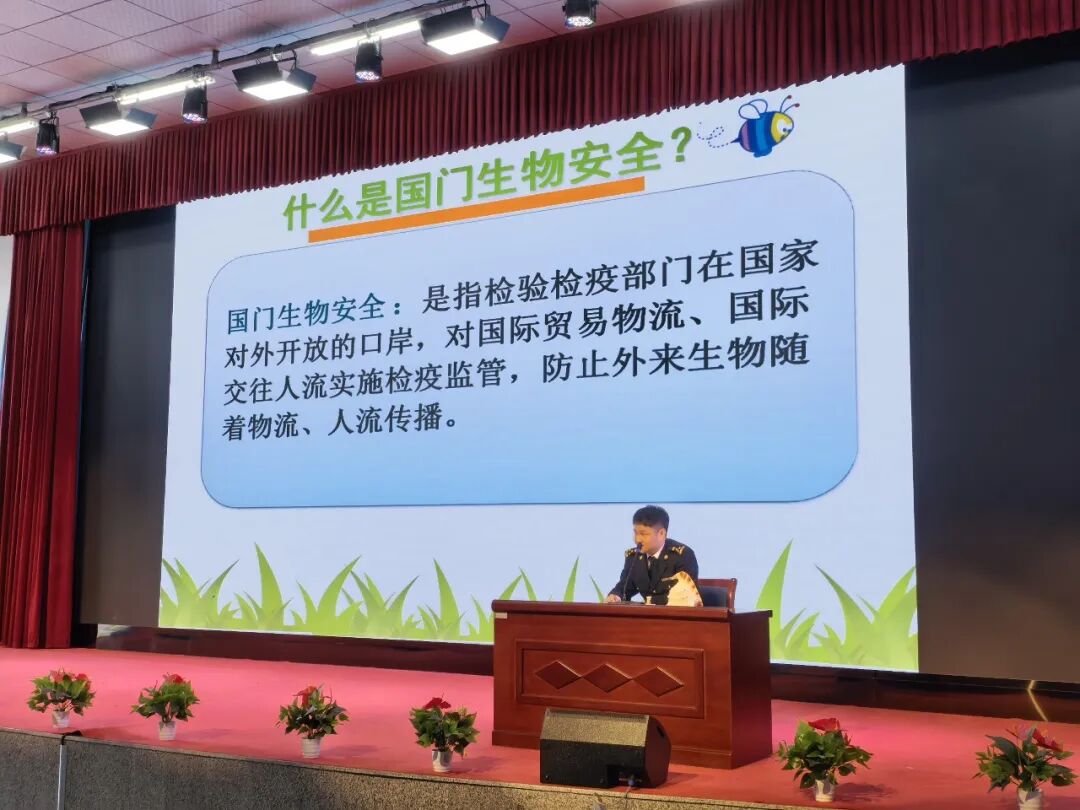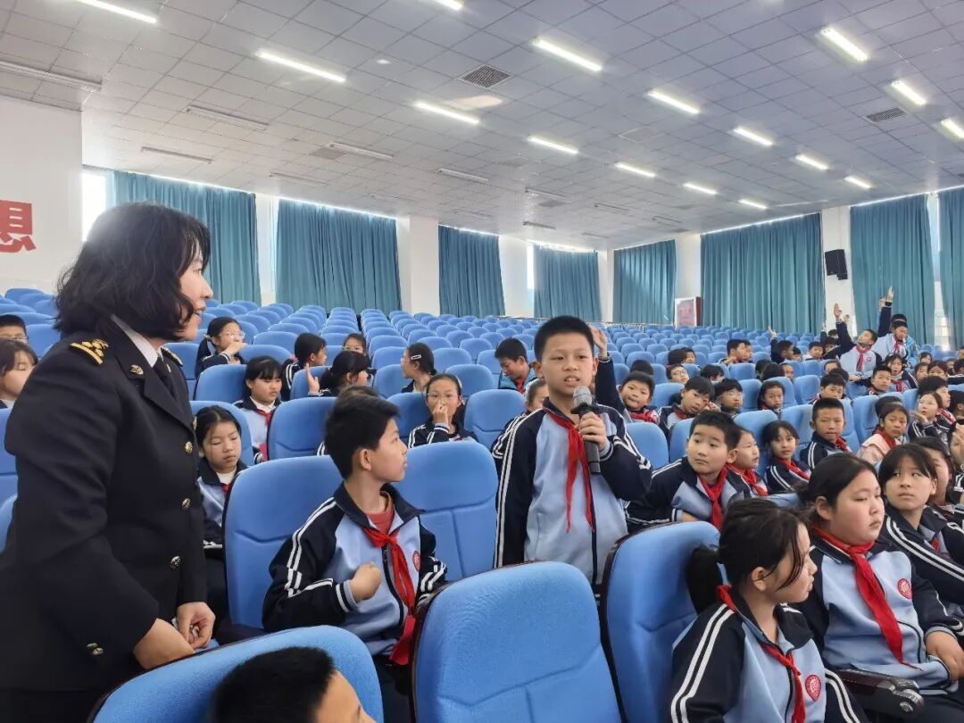 随后,青岛胶东机场海关卫生监督科秦永刚为师生们开展国门安全知识专题讲座。讲座围绕国门生物安全、进出境违禁物品识别、海关相关法律法规等内容展开,结合真实案例以案释法,生动讲解了海关在维护国家安全中的重要作用,引导同学们从小树立要“守护国门”的理念,学会识别安全隐患、规避安全风险,进一步提升自身安全防范意识和法治素养。