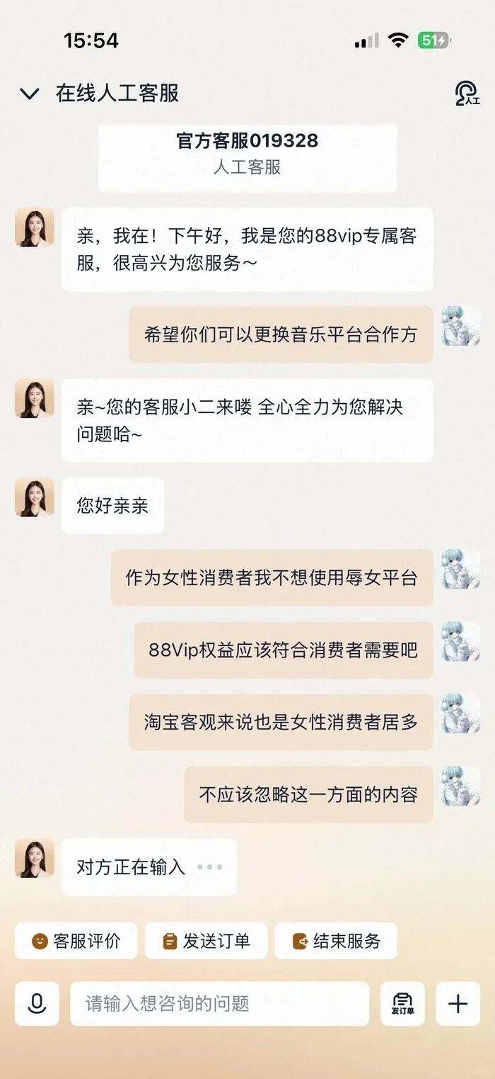 还有一部分用户将投诉延伸至外部合作方。由于网易云音乐接入阿里巴巴88VIP体系,有用户转而向88VIP客服反馈,表达“不愿继续使用相关服务”“希望更换合作平台”等诉求。这一动作,使得争议从单一产品问题,外溢至其合作生态。