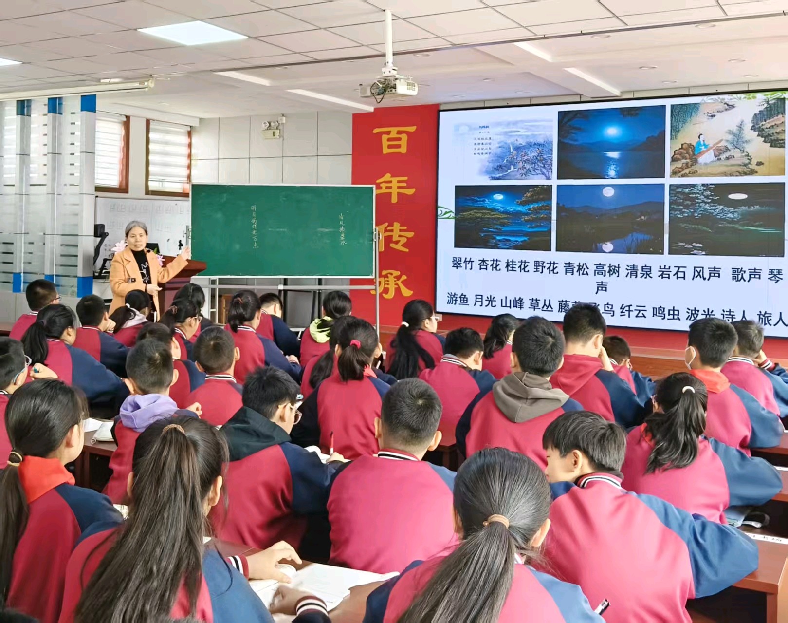 在活动现场,与会人员观摩了潍城区实验小学李桂英老师“语文+诗联”示范课,直观感受诗词楹联与学科教学深度融合的创新实践。与会人员总结了全市及潍城区诗词楹联进校园工作成果,分享了学校文化教学的典型经验;参会代表围绕工作推进、模式创新、长效建设等内容深入研讨,凝聚发展共识。大家还实地参观了学校诗联文化阵地,沉浸式感受传统文化浸润校园的浓厚氛围。此次现场会,充分发挥各位老干部在传承优良文化中的优势作用,搭建起全市诗词楹联进校园工作交流互鉴、经验推广的重要平台。