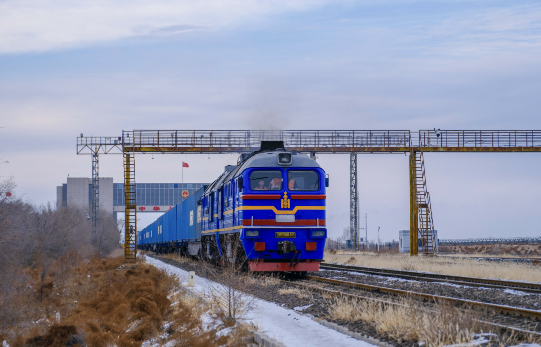一列中欧班列通过内蒙古二连浩特铁路口岸入境。 新华社记者 马金瑞 摄